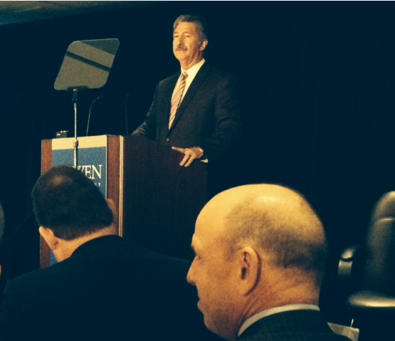 I caught a photo that I think is interesting. The photo is of Mario Longhi giving his keynote speech about the changes and challenges at U.S. Steel. He talked about the need to change the way employees think and interact with their jobs. My photo catches Longhi speaking with John Surma listening to his speech in the foreground.