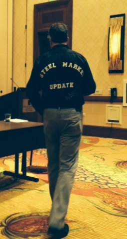 I am in San Antonio where I spoke to the HARDI wholesalers, manufacturing companies associated with HARDI and others interested in galvanized steel. Steel Market Update was spoofed by the speaker just before I went on. The speakers had been asked to keep our presentations free of advertising for our companies. So, Tim Quinn of Majestic Steel was speaking about the consolidation of the steel industry and after he began his talk he removed his jacket. He then mentioned to the group that the speakers had been asked to forgo “shameless self-promotion.” He then proceeded to turn around so that the assembled crowd could see the Steel Market Update name across the back of his shirt. A good laugh was had by all.