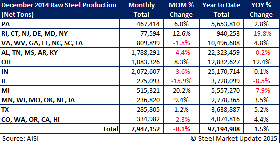 2014 Raw Steel Production Up 1.5 Percent Over 2013