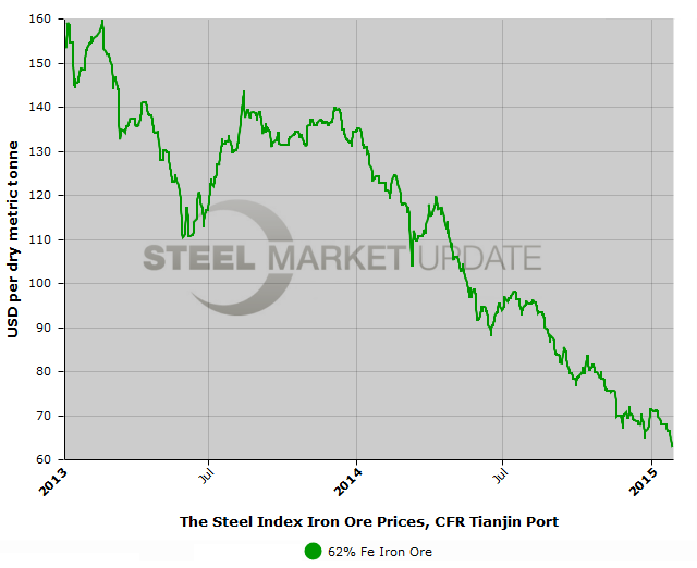 Quite a few analysts or Bulletins expect dramatic cut in over capacity in the Steel Sector in China in 2015, but from what we know, there will be only around 15 million tons of cutbacks John and this should leave Ore prices at USD50-60/mt throughout 2015. We have right now a USD1.00 to Fe 1% value.