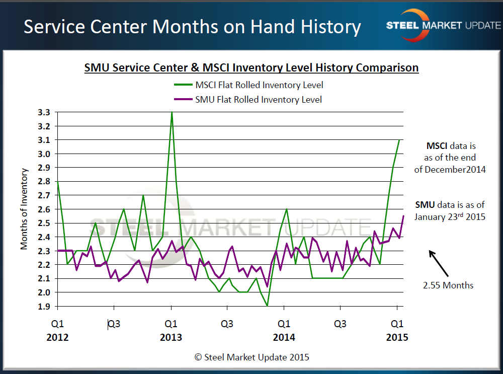 A number of the steel mills spoke of prices nearing the bottom of the market as the spread between foreign and domestic pricing shrinks, making domestic steel more attractive. As the inventory over-hang is addressed (which was exacerbated by the unexpected crash of the energy markets) we should see service centers return to the domestic steel mills in order to replace steel which is currently being pushed onto the spot markets. SMU expects this to take another month to two months and could take longer if February and March import levels continue to be at the historical monthly highs we have seen in December and now, again, in January 2015.