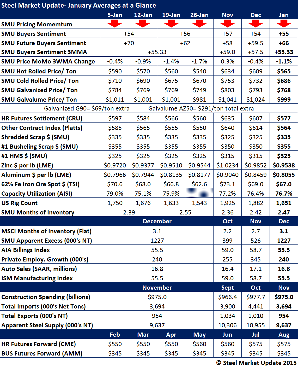 January hot rolled averaged $565 per ton as compared to $577 per ton (CRU) and $564 per ton (Platts).