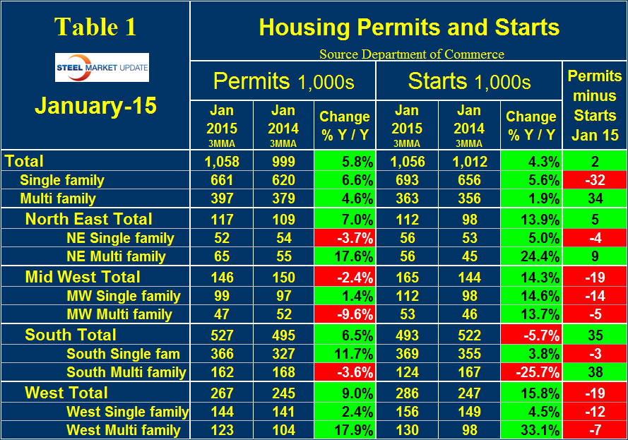 Permit data is useful is useful as a forward look at future starts. If permits exceed starts then we anticipate an acceleration and vice versa. Table 1 shows total permits and starts nationally and regionally.