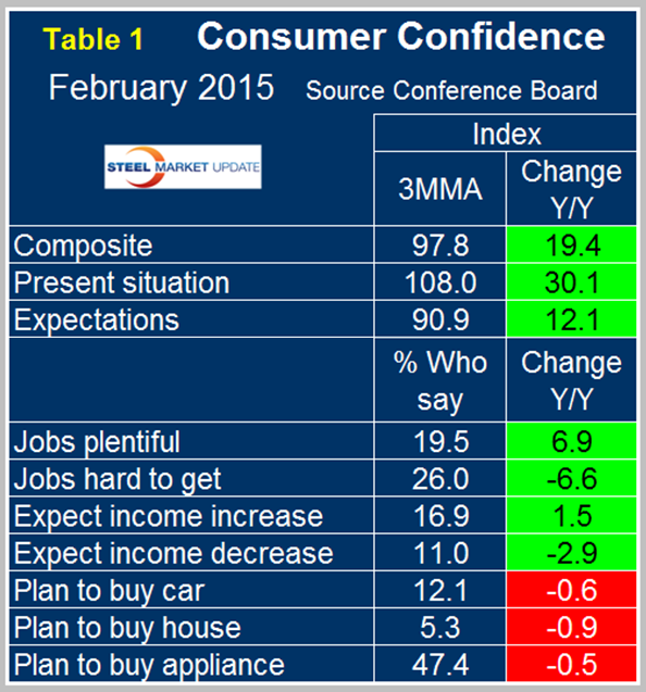 Sources: The Conference Board and February 2015 Consumer Confidence Survey.