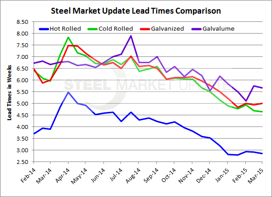 Galvanized lead times also remained essentially the same as what we have been reporting since mid-January at 5 weeks. This too is one week shorter than the 6 weeks reported at this time last year.