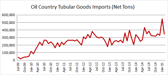 U.S. Steel has had to adjust to the new realities of not only oil & gas prices but the fact that imports of OCTG and other products related to the drilling industry have not adjusted lower as they should have by now (see graphic below).