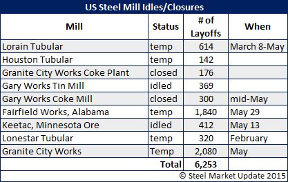 First, before everyone goes completely crazy regarding the US Steel announcement to “idle” the Granite City Works steel plant, SMU has been told by Courtney Boone, US Steel media spokesperson, that the plant would not go down prior to May 28, 2015. A lot can happen (and will happen) in the industry prior to that date.