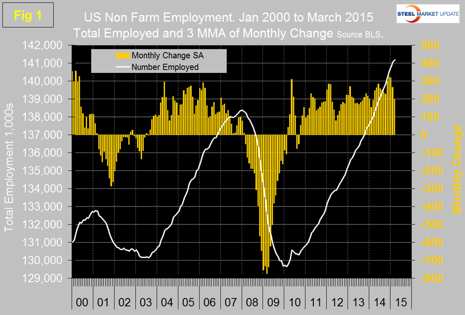 The Bureau of labor Statistics, (BLS) reported on Friday: “Total non-farm payroll employment increased by 126,000 in March, and the unemployment rate was unchanged at 5.5 percent. Employment continued to trend up in professional and business services, health care, and retail trade, while mining lost jobs. The change in total non-farm payroll employment for January was revised from +239,000 to +201,000, and the change for February was revised from +295,000 to +264,000. With these revisions, employment gains in January and February combined were 69,000 less than previously reported. Over the past 3 months, job gains have averaged 197,000 per month.”