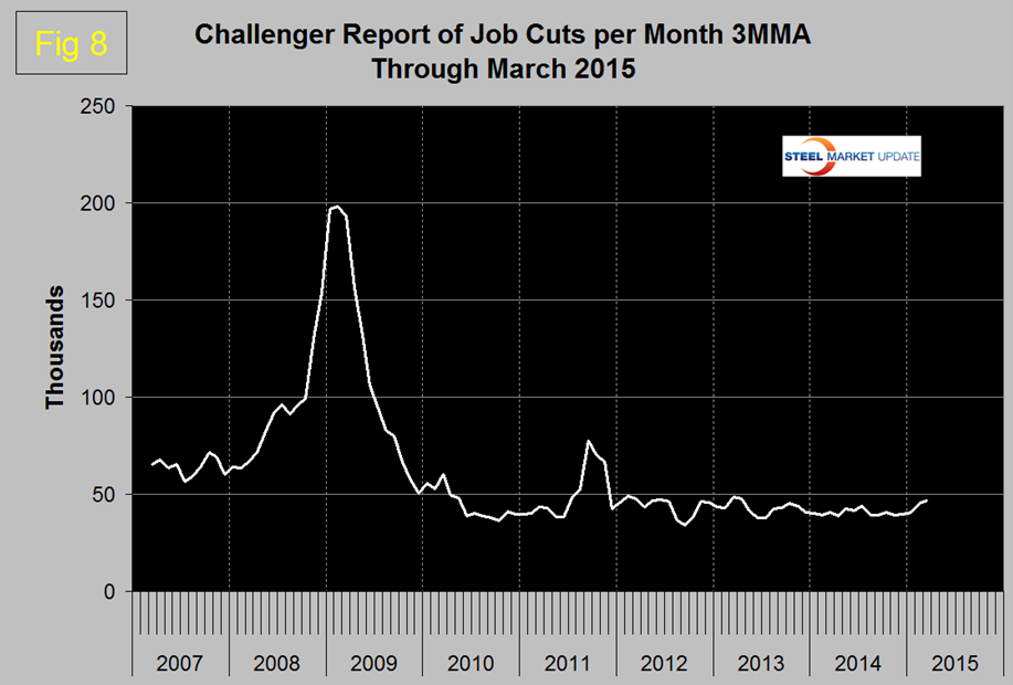 Our analysis reports a three month moving average and on this basis the layoffs are up by 15.6 percent year over year, (Figure 8).