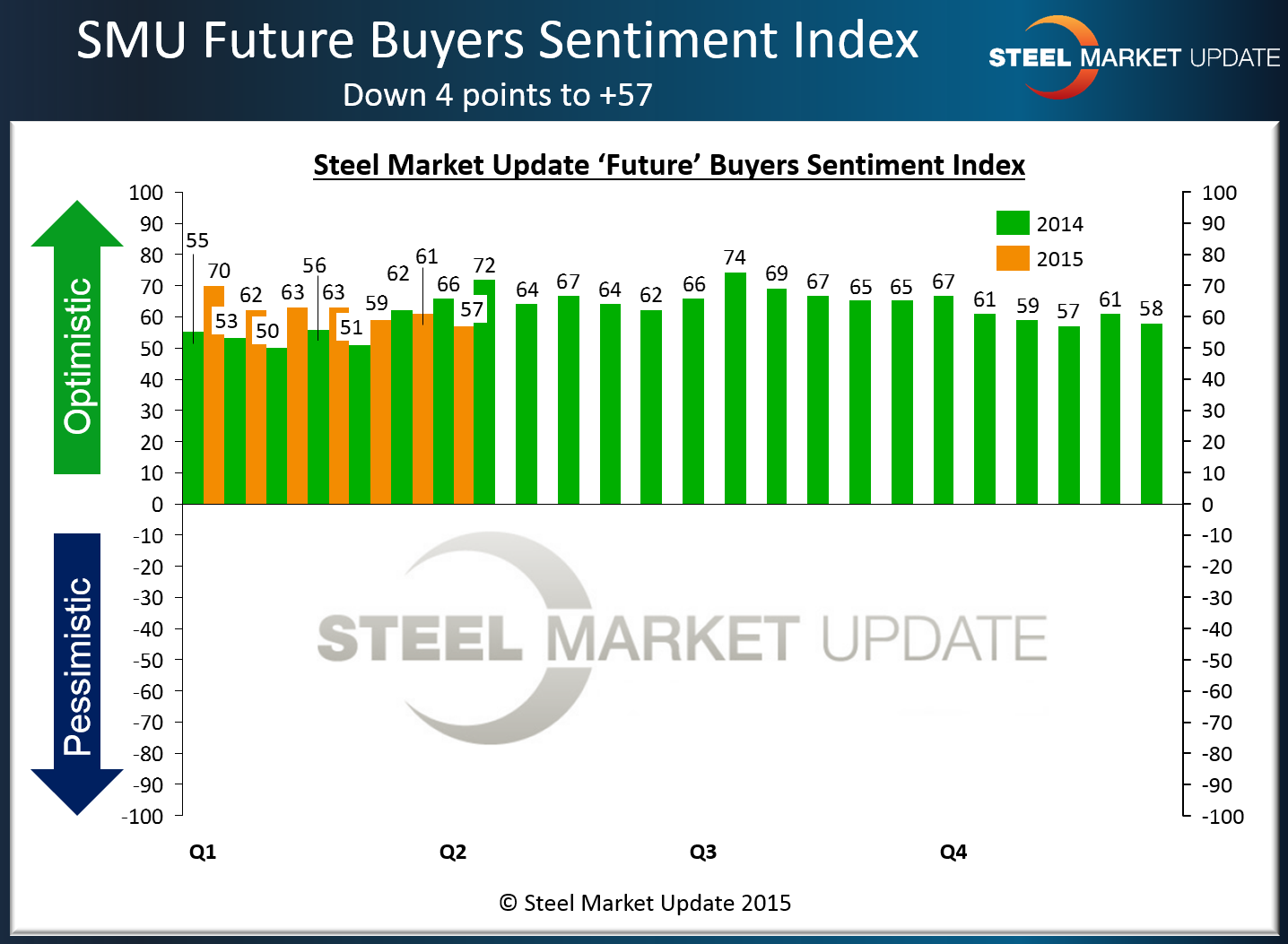 Steel Market Update (SMU) has two Steel Buyers Sentiment Indices, current and future. We normally concentrate our initial comments on the current index, how buyers and sellers of steel feel about business conditions and their company’s ability to be successful in the current market. However, today and going forward, we will begin focusing on how buyers and sellers feel about their company’s ability to be successful three to six months into the future.