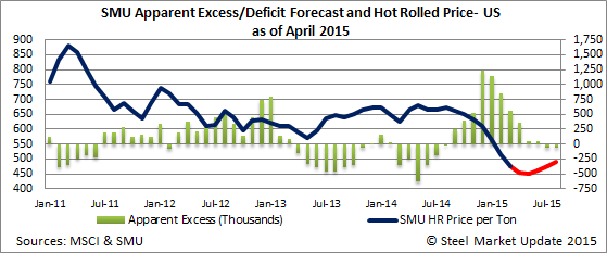 Our March 2015 forecast called for flat rolled shipments of 2,372,000 tons. Based on the just released MSCI data, actual flat rolled shipments totaled 2,389,000 tons or 17,000 tons more than forecast.