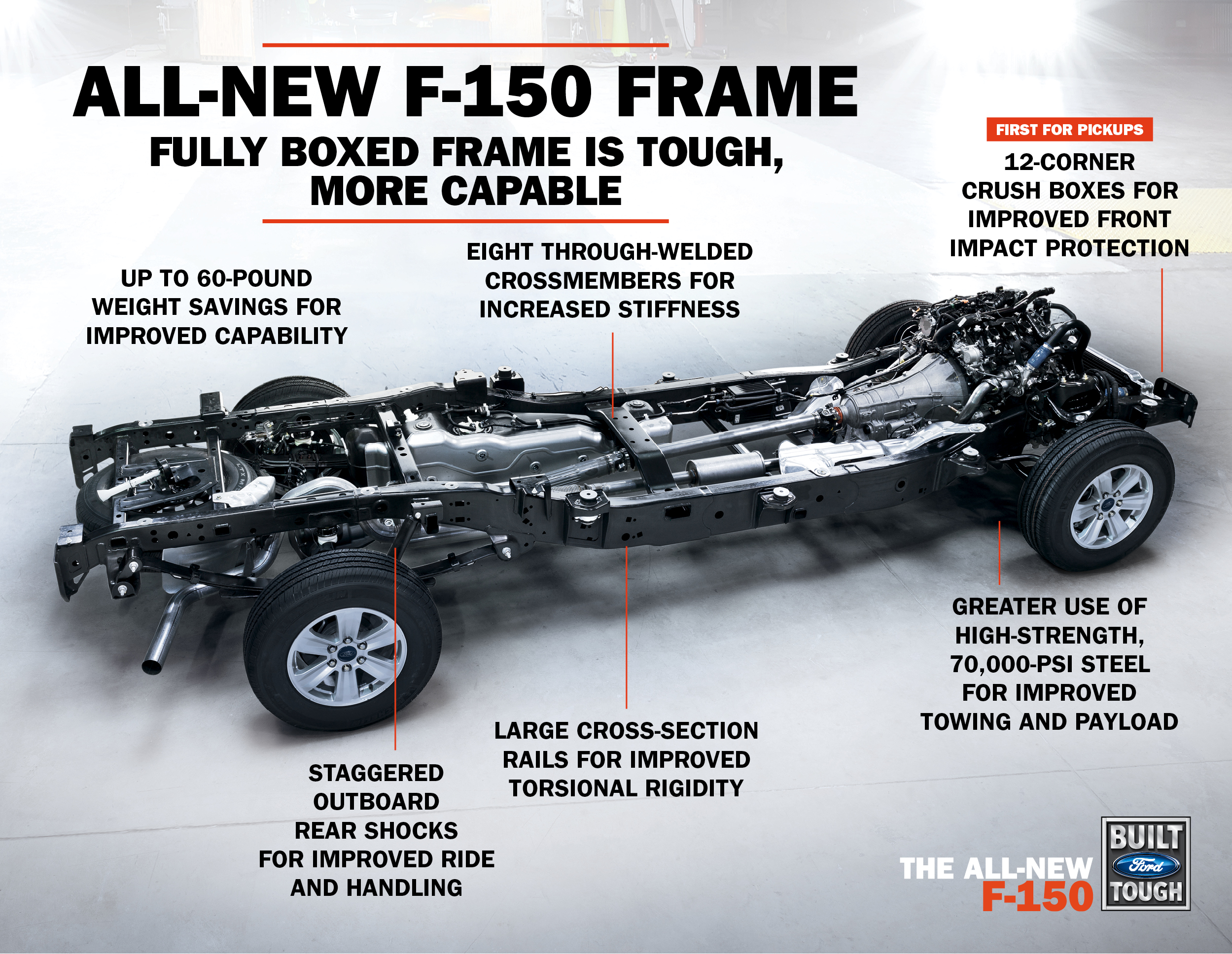 “The team had to invent new ways to manage crash energy, because advanced materials like high-strength steel behave differently,” said Matt Niesluchowski, Ford truck safety manager in a company press release. “We found that changing certain shapes led to a weight reduction, while also improving crash performance.”