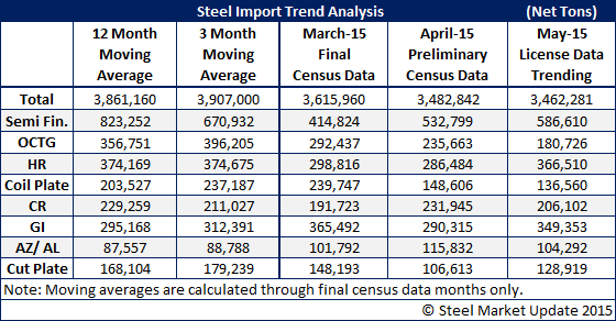 The US Department of Commerce released preliminary census import data today (Tuesday) for the month of April. Steel Market Update (SMU) has analyzed the data for April and we have also revised our Trend Analysis for foreign steel imports for the month of May based on license data received through today.
