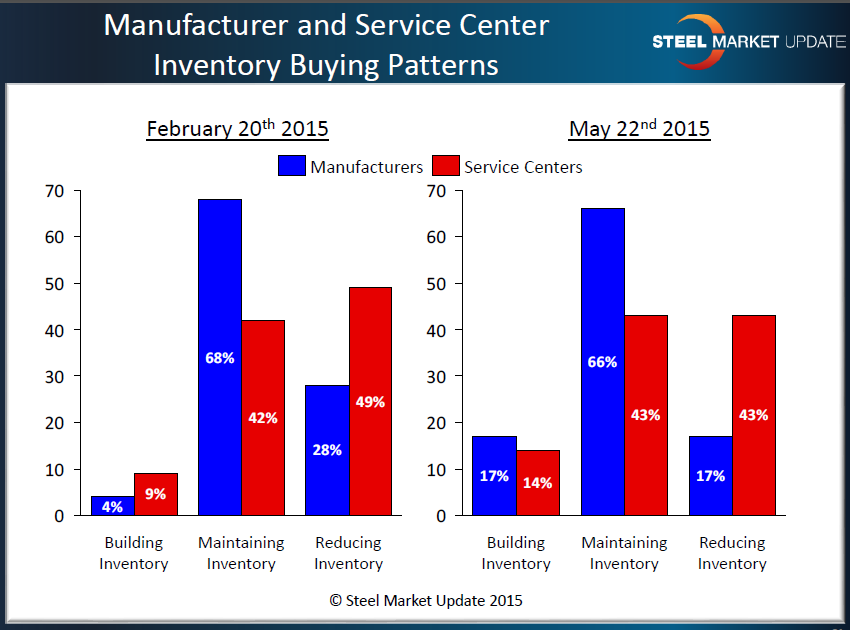 When we started producing our flat rolled market analysis one of the first items we asked was directed at manufacturing companies and service centers. We have been asking from the beginning about inventory buying patterns. What we have been interested in learning more about is whether inventories are balanced or need adjusting. When inventories need adjusting that puts pressure on the mill order books and pricing.