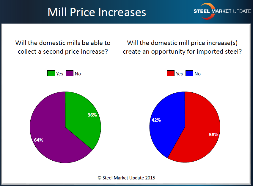 At the same time, we wanted to know if the mill price increases were creating an opportunity for more foreign steel and we found that a majority of our respondents (58 percent) believe that the price increases will encourage more foreign steel to U.S. shores.
