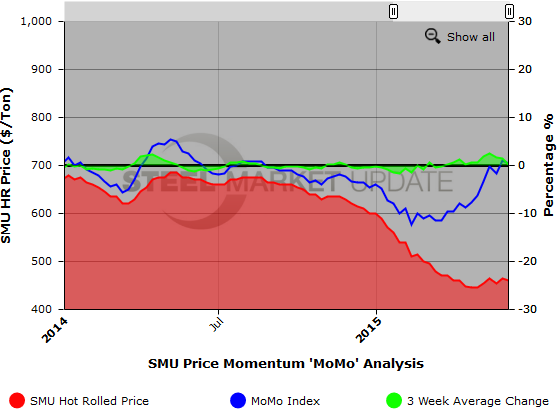 SMU Note: You can view the graphic on our Price MoMo Index below, but to use its interactive capabilities you must read this article on the Steel Market Update website. If you need any assistance, contact us at info@SteelMarketUpdate.com or 800-432-3475.
