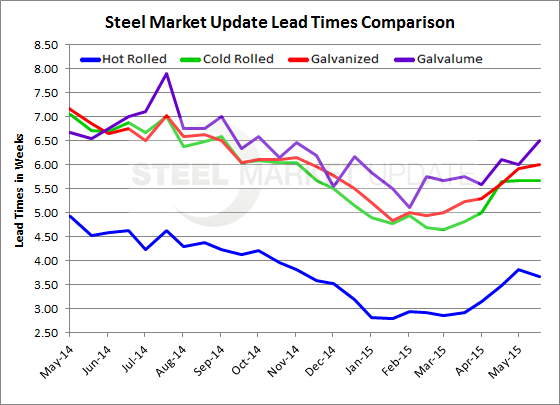 Lead times have not shot out since the price increase announcements were made in early May. Hot rolled lead times were reported as being 3.5 weeks at the beginning of May and one month later HRC lead times averaged 3.66 weeks according to the results of our most recent flat rolled steel survey. Lead times on HRC are better than the 2.86 weeks average we saw back in mid-March but are below the 4.5 weeks we saw at this point in the year this time last year.