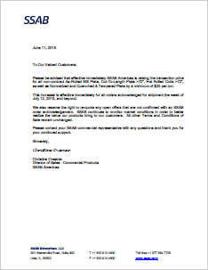 Please contact your SSAB commercial representative with any questions and thank you for your continued support.