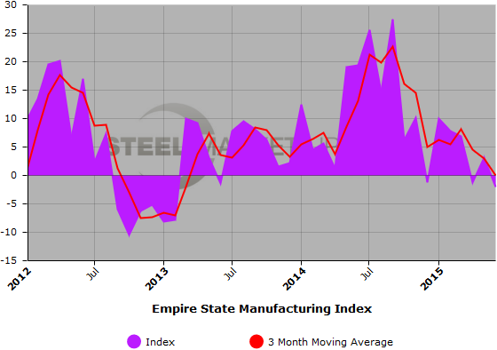 SMU Note: Below is a graphic showing the Empire State Manufacturing Index history. To use the graphs interactive capabilities, you must view it on our website. You can do this by clicking here. If you need help navigating the website or need to know your login information, contact us at info@SteelMarketUpdate.com or by calling 800-432-3475.