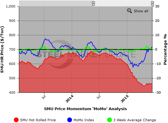 SMU Note: You can view the graphic on our Price MoMo Index below, but to use its interactive capabilities you must read this article in the Steel Market Update website. If you need any assistance, contact us at info@SteelMarketUpdate.com or 800-432-3475.