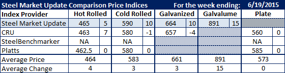 We also saw galvanized as being up $10 this past week while CRU saw it down $4 per ton. There is now only a $7 spread between the CRU and SMU indexes on GI.