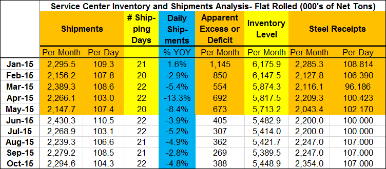 “We’re down nearly ½ million tons in FR so far in 2015, and most assume it’s lower buying levels in Energy, Ag, and Heavy Equip. Assuming those industries are not going to show positive trend growth from the first 4 month’s rate, we’ll need to see other industries buying more to offset…”