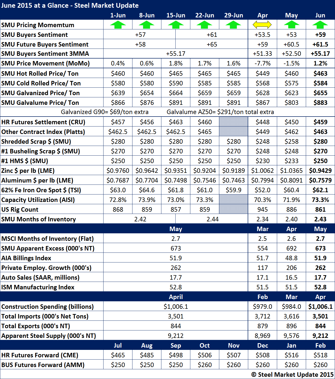 June ended the same way it started with our SMU Price Momentum Indicator pointing toward higher flat rolled steel prices. This is now the second month in a row where our Momentum Indicator has been pointing up.