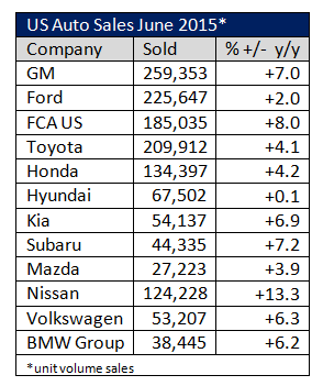 Actual volume for the month totaled 1.47 million units, with small and mid-size trucks leading sales. Sales for the first half of 2015 were at a 10 year high of 8.49 million, up 4.4 percent from 2014.