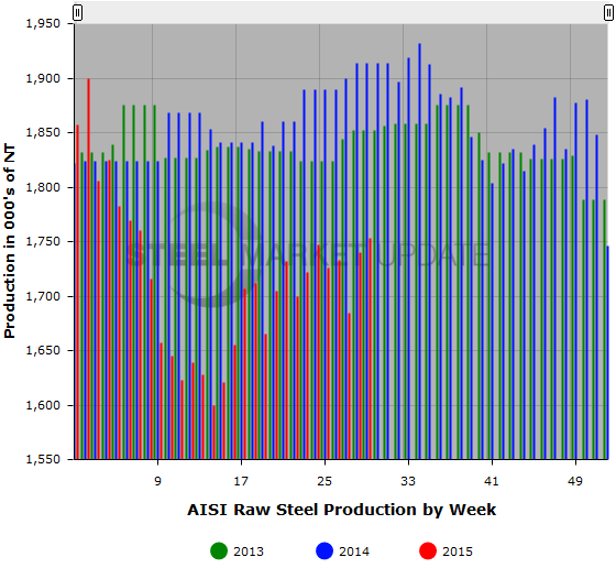 SMU Note: Below is a graphic showing the weekly raw steel production history. To use the graphs interactive capabilities, you must view it on our website. You can do this by clicking here. If you need help navigating the website or need to know your login information, contact us at info@SteelMarketUpdate.com or by calling 800-432-3475.