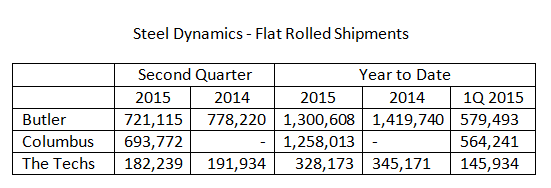 SDI shipped 2,078,685 tons of steel in Q2 compared to 1,518,882 tons year over year. Average price of steel per ton was $662, down from $833 in Q2 2014. Second quarter steel utilization rate was at 87 percent.