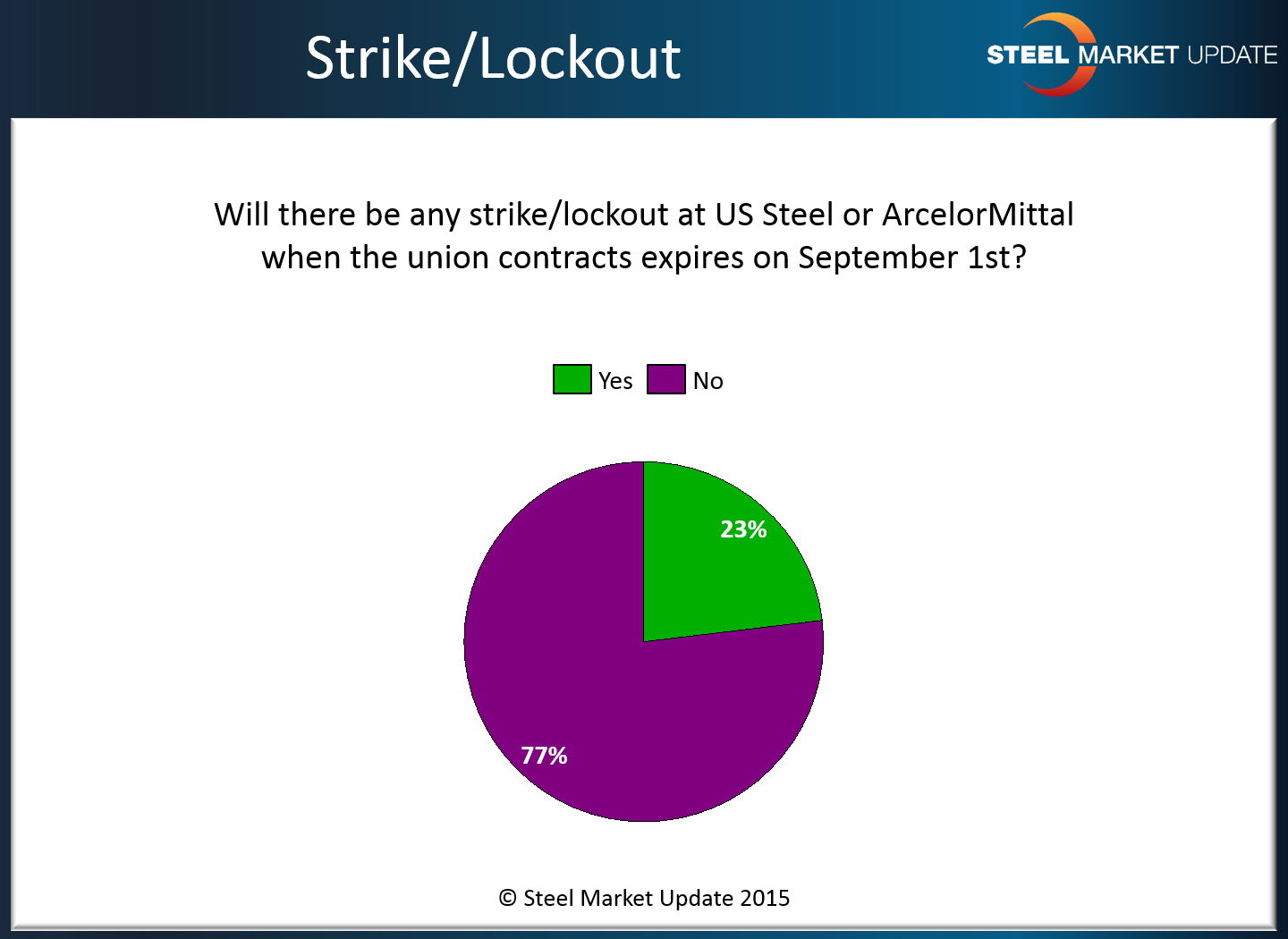 We asked those participating last week, “Will there be any strike/lockout at US Steel or ArcelorMittal when the union contract expires on September 1st?”