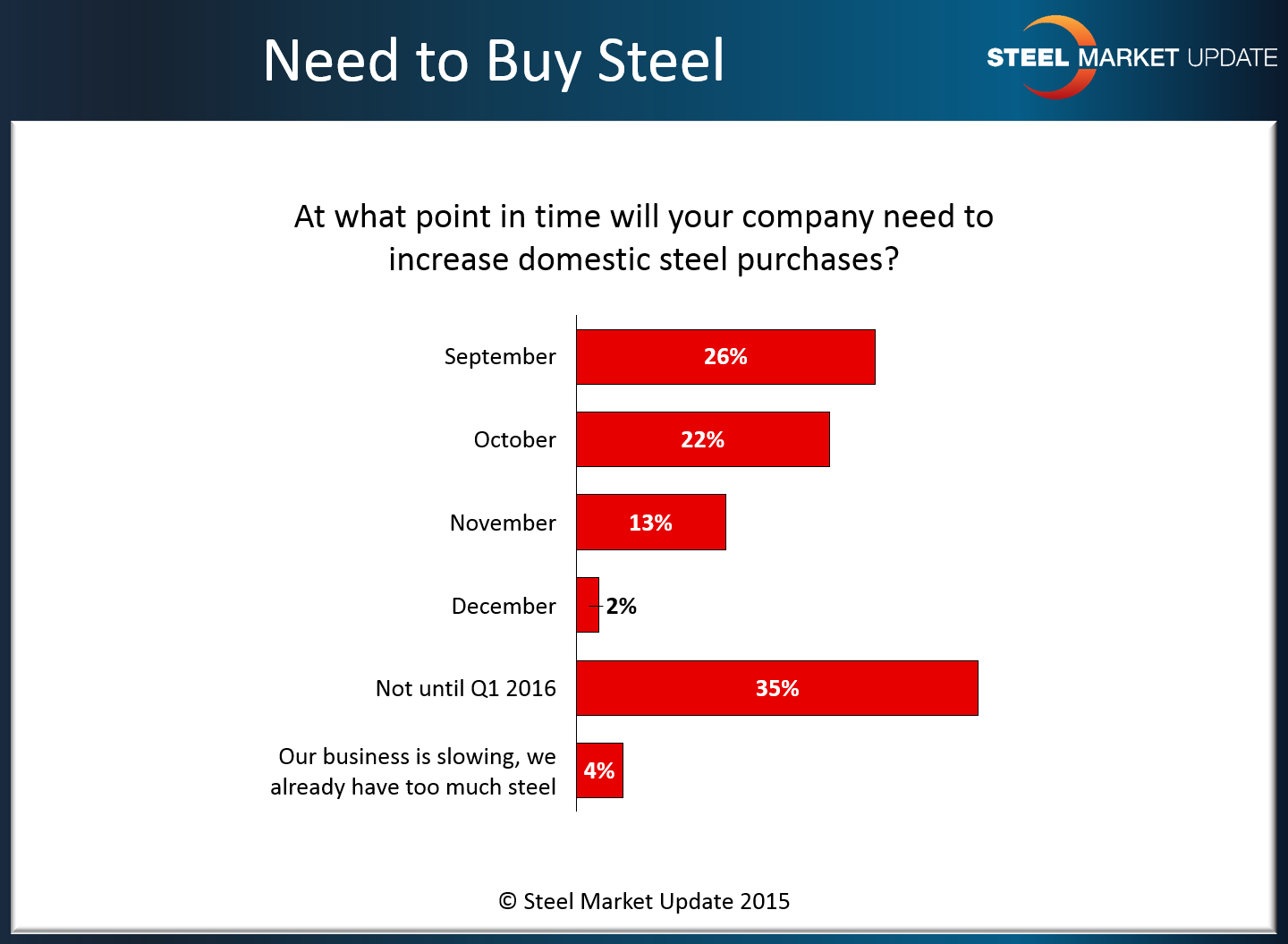 We then asked a new question of the entire group participating in last week’s analysis. We asked our participants, “At what point in time will your company need to increase domestic steel purchases?”