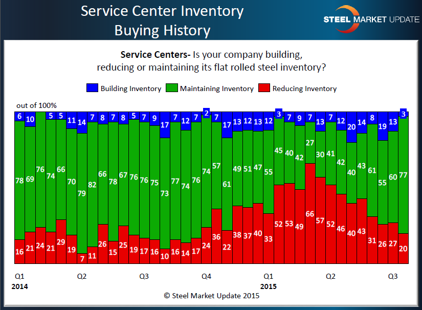 Steel Market Update looks at these two issues, demand and inventories, in a number of ways during our flat rolled steel market analysis that we conduct twice per month. Last week we sent out invitations to participate in our questionnaire on the market and in this article we will focus on what we learned.