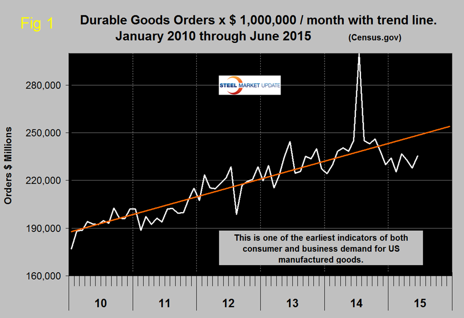 The year over year growth rate of the 3MMA came in at negative 3.9 percent in June and has been deteriorating for nine straight months. This index is routinely whipsawed by both civil and military aircraft orders but we include it in our steel analyses because it is a reality check for other manufacturing data and is described by the Census Bureau as one of the earliest indicators for US manufactured goods.