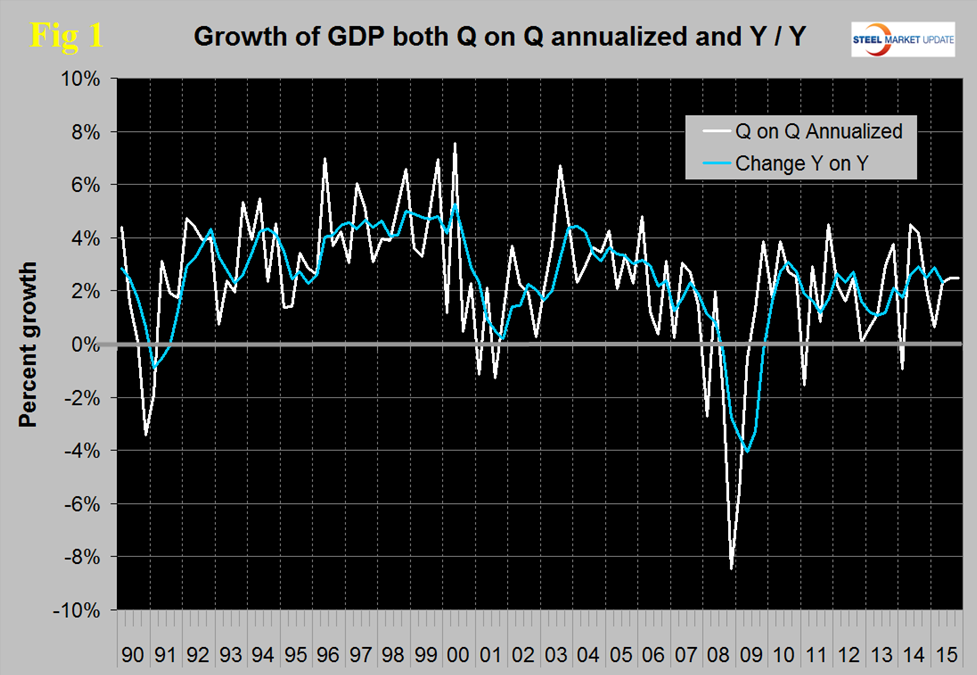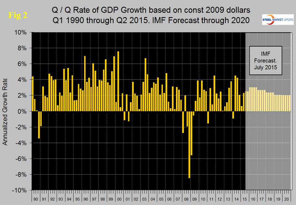 SMU Comment: We have reported frequently in the past on the relationship between GDP and steel consumption. Steel growth follows economic growth but is very much more volatile. In addition over the long run about a 2.5 percent growth of GDP is necessary to get any growth in steel consumption. Based on the trailing 12 month growth of GDP which in Q2 was 2.32 percent we can expect steel consumption to be fairly stable in H2 2015. The IMF forecast for 2015 which in our last update was + 3.09 percent was revised down to 2.5 percent in July which if accurate suggests no change in steel demand.