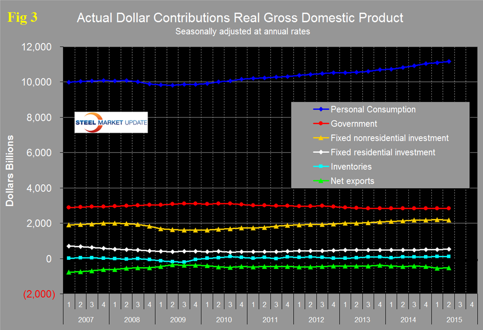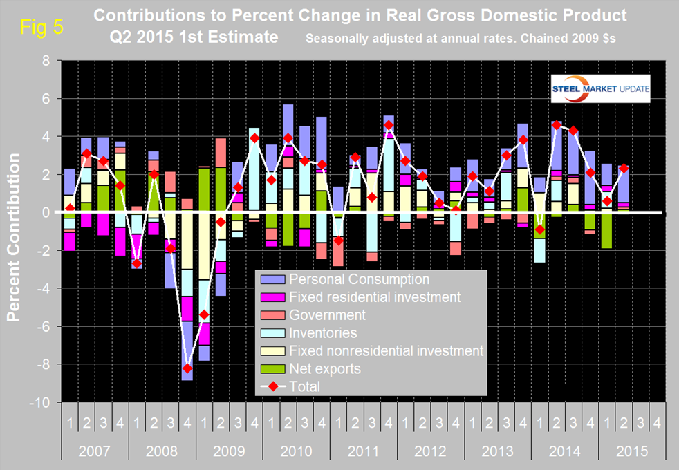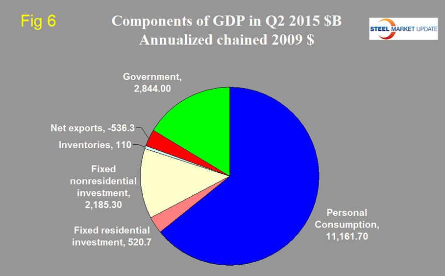 Personal consumption is dominant and in Q2 accounted for 68.60 percent of the total. Figure 4 shows the change in the major sub-components of GDP in Q2 2015.