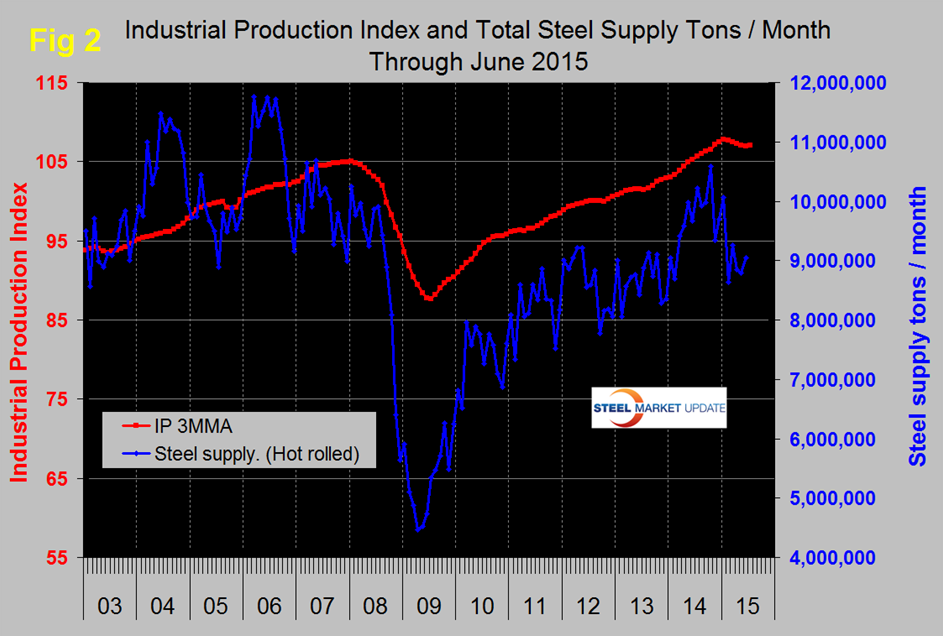 Steel supply took its seasonal dive in December then a much bigger dive in February with not much recovery in the last four months. Since January service centers have reduced inventory by 821,000 tons. This explains the steel line in Figure 2 assuming service centers are representative of the whole supply chain. Energy projects are now suffering from the current oil and gas price decline. Housing and non-residential construction are still a drag. Nonresidential won’t experience a full recovery until late 2017 at the earliest and at the present rate housing will be well into the next decade before we see the performance of 2005, which was over two million single and multifamily units.