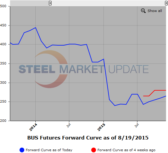 Having dropped $20-25/GT in July depending on quality and region, the market may have oversold a bit as many expecting a rise in September. We’re now at a price point where the obsolete faucet is almost shut and the prime generation is slowing now too with poorer steel demand so pretty likely that dealers can push back this time around, and wait out the market if need be. We are also now pretty much at parity to the export market with CFR last $240/MT CFR Turkey. Also with Iran getting back $150 billion big ones whether the world ratifies the deal or not chances are there will be some demand coming out of the Middle east as a result to prop up the scrap market there. Scrap may be the unexpected floor in prices here.