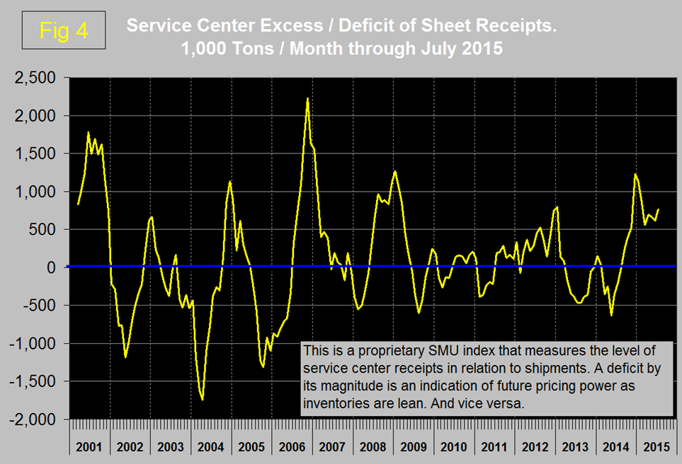 The problem this month was with the service center excess which increased to 767,000 tons. We regard this as indicative of weak pricing power going forward (Figure 4).