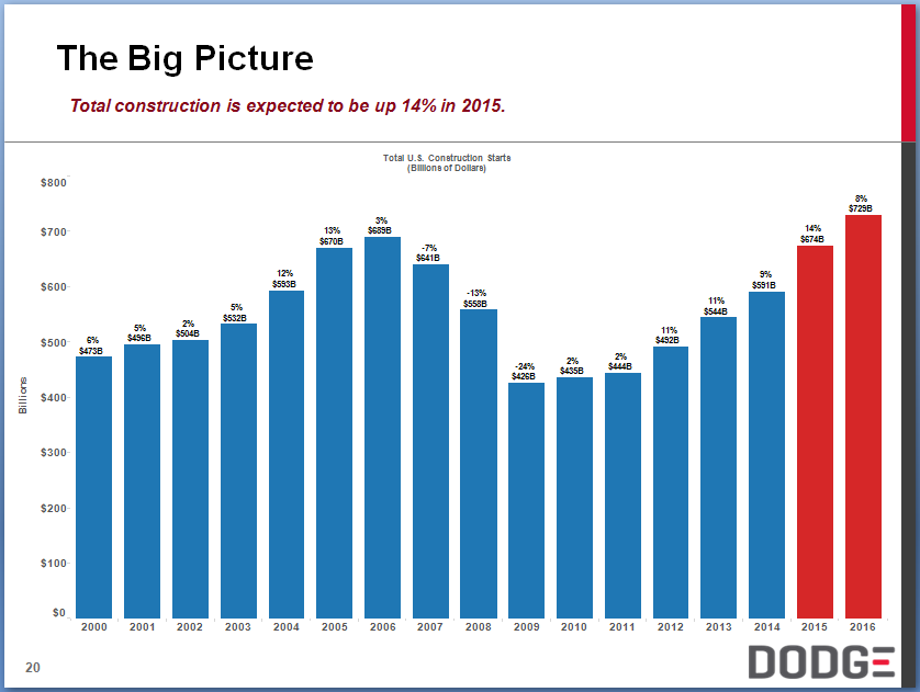 When looking at construction, which is approximately 60 percent of the overall steel market, Dodge projects total expenditures of $729 billion.
