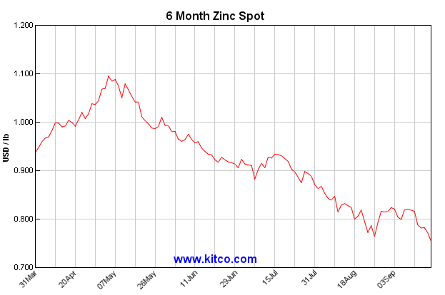 After zinc spot pricing peaked in May of this year at $1.10 per pound, it has been steadily moving lower, closing at $0.7363 per pound at the end of trading on Monday, September 28th. Steel Market Update has been writing about the drop in spot LME zinc (as well as aluminum which impacts Galvalume, Aluminized and Galfan pricing) advising that it was only a matter of time before the domestic mills would adjust their extras. We anticipate other mills may follow the Nucor lead although the end result may be slightly different extras.