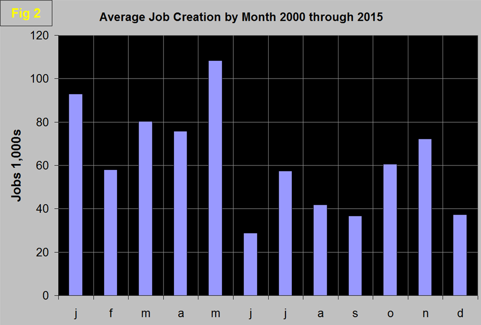These numbers are seasonally adjusted by the BLS so to examine any seasonality is left in the data after adjustment we have developed Figure 2 which suggests that the adjustment is less than perfect.