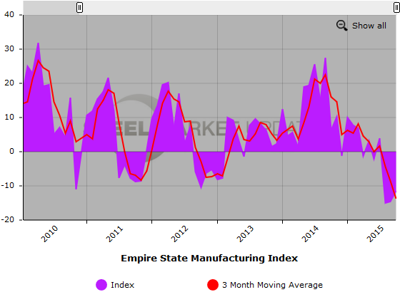 Manufacturing activity declined for the third consecutive month in New York according to the October 2015 Empire State Manufacturing Survey.