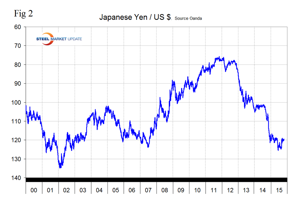 In 2014, 25 percent of the U.S. economy was related to international trade therefore currency swings can have a huge effects on the economy in general and of the steel industry in particular. At the 12 month level the dollar has strengthened against every one of the steel trading currencies.
