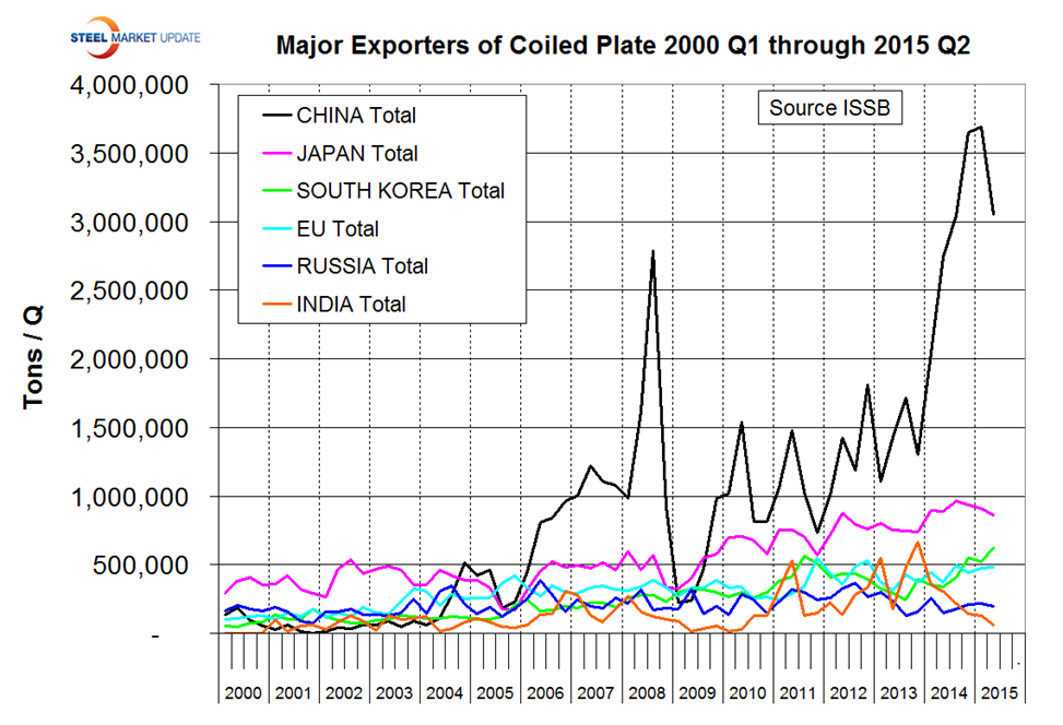 Figure 4 shows the five major importers of coiled plate of which in the six quarters through Q2 2015 the US was in 3rd place.