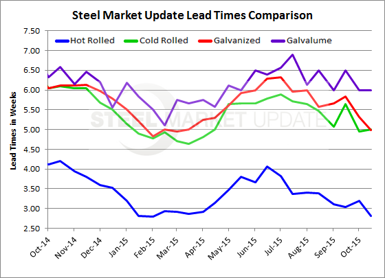 Galvalume lead times remained the same as what was reported at the beginning of the month. The 6.0 week average is about one half a week shorter than what we reported AZ average lead times to be in mid-October 2014.
