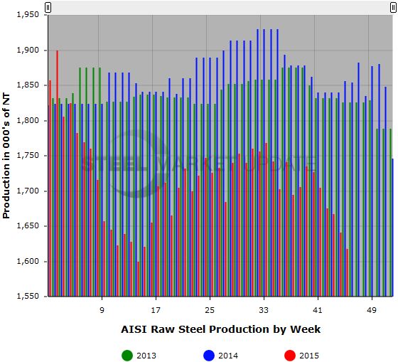 SMU Note: Below is a graphic showing the weekly raw steel production history. To use the graphs interactive capabilities, you must view it on our website. You can do this by clicking here. If you need help navigating the website or need to know your login information, contact us at info@SteelMarketUpdate.com or by calling 800-432-3475.