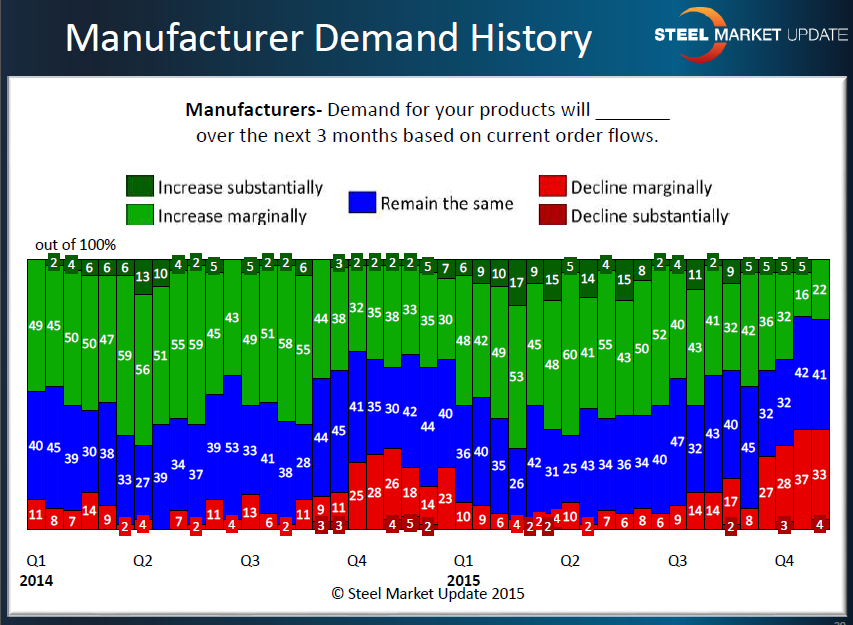 We break out into groups and we ask each group to comment on demand (or releases of steel by their customers). Manufacturing and distribution are the two main market segments we look at to understand how the groups view demand.