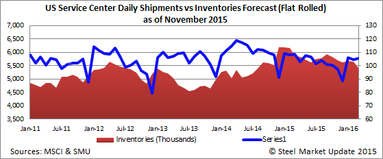 Our new forecast calls for shipments to be 1,944,000 tons for the month of November and that carbon flat rolled inventory will drop to 5,687,000 tons at US service centers.