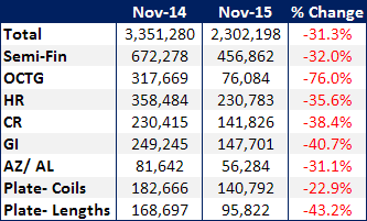 As you can see by the table provided above, we saw hefty decreases in semi-finished (slabs/billets but mostly slabs), oil country tubular goods (OCTG), galvanized and Galvalume (other metallic). Other products followed by SMU also saw minor reductions and we anticipate further decreases in cold rolled and hot rolled as we move closer to Preliminary Determination announcements on antidumping and countervailing duties (AD/CVD).